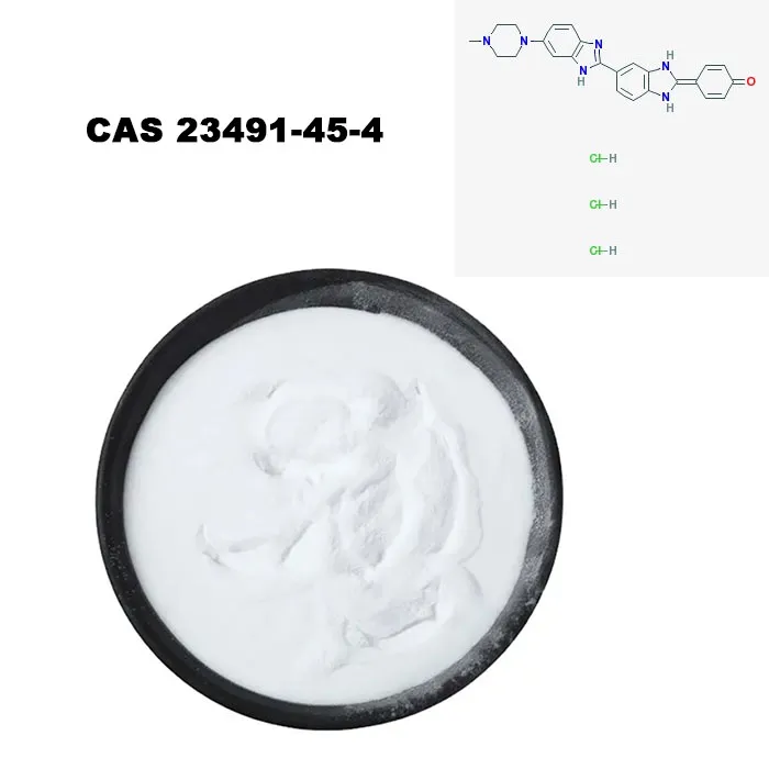 Związkiem odpowiadającym CAS 23491-45-4 jest bisbenzimid H 33258, z wzorem molekularnym C25H24N6O · 3HCl, masa molekularna 533,88 g/mol, liczba CAS 23491-45-4 i liczbą einecs {245-690-6.}
